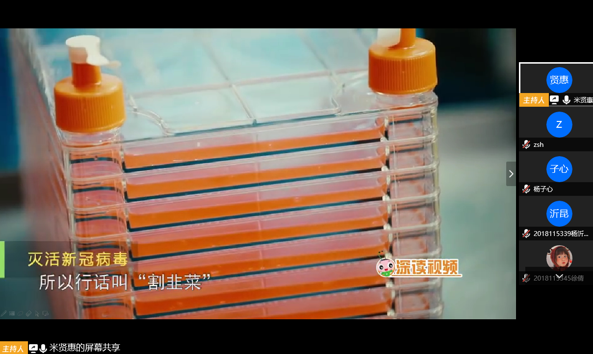 数学与应用数学2018级1班团支部于4月23日下午两点通过腾讯会议成功开展了以“共抗疫情·爱国力行”为主题的线上团日活动。团日活动由团支书米贤惠主持,支部全体团员青年积极参与。支部1+100对接团委干部、做爱直播