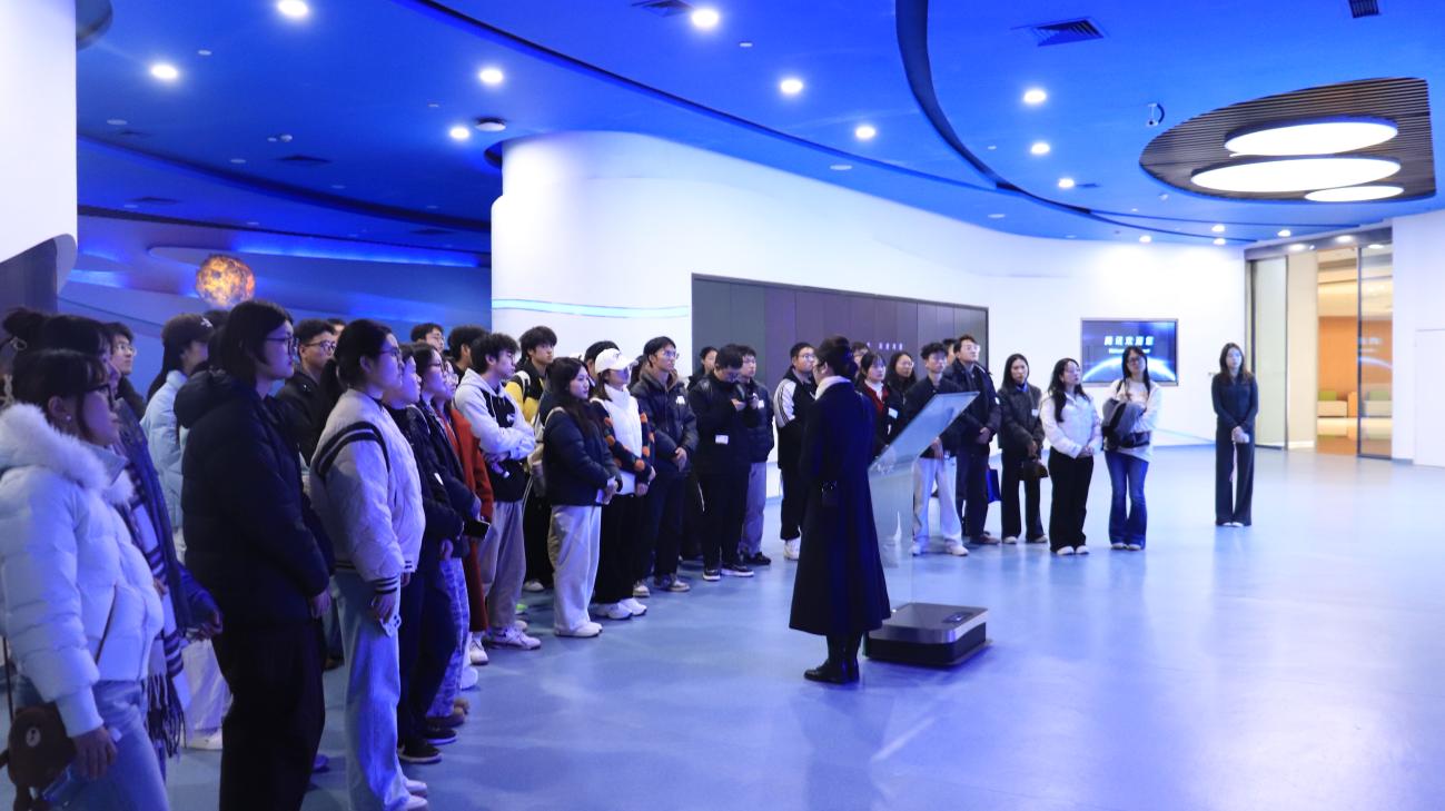 师生的到访表示热烈欢迎。在工作人员的引导下,师生一行有序参观了企业一楼展厅。讲解人员通过图文展板、互动产品演示等多元形式,系统梳理了腾讯的发展脉络,全面展示了其在社交娱乐、智慧医疗、智慧交通、产业互联等多个领域的业务布局与实践成果,让师生们直观感受到科技企业技术创新对社会生活各领域的赋能价值,也对互联网行业的前沿发展趋势形成了更清晰、深刻的认知。