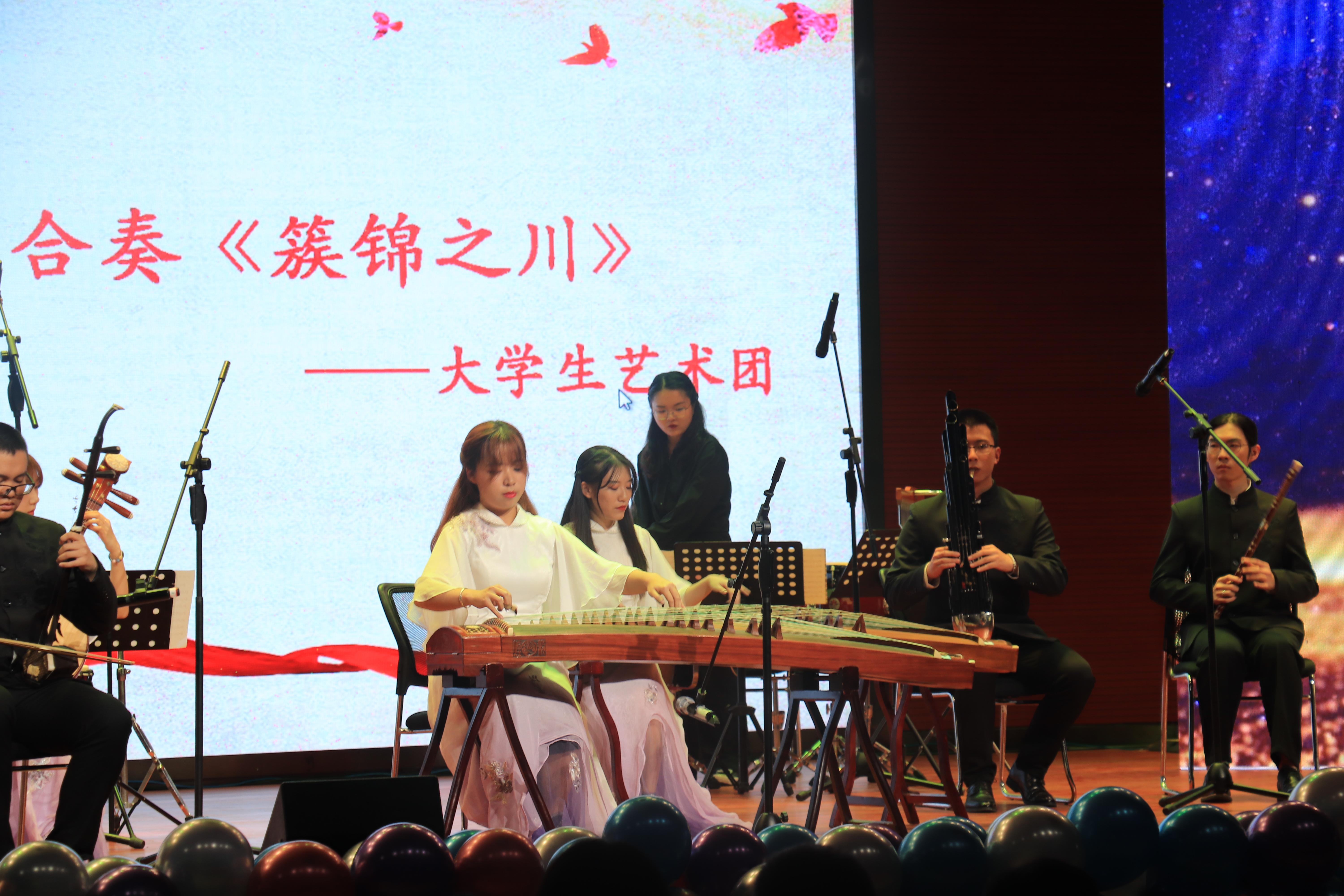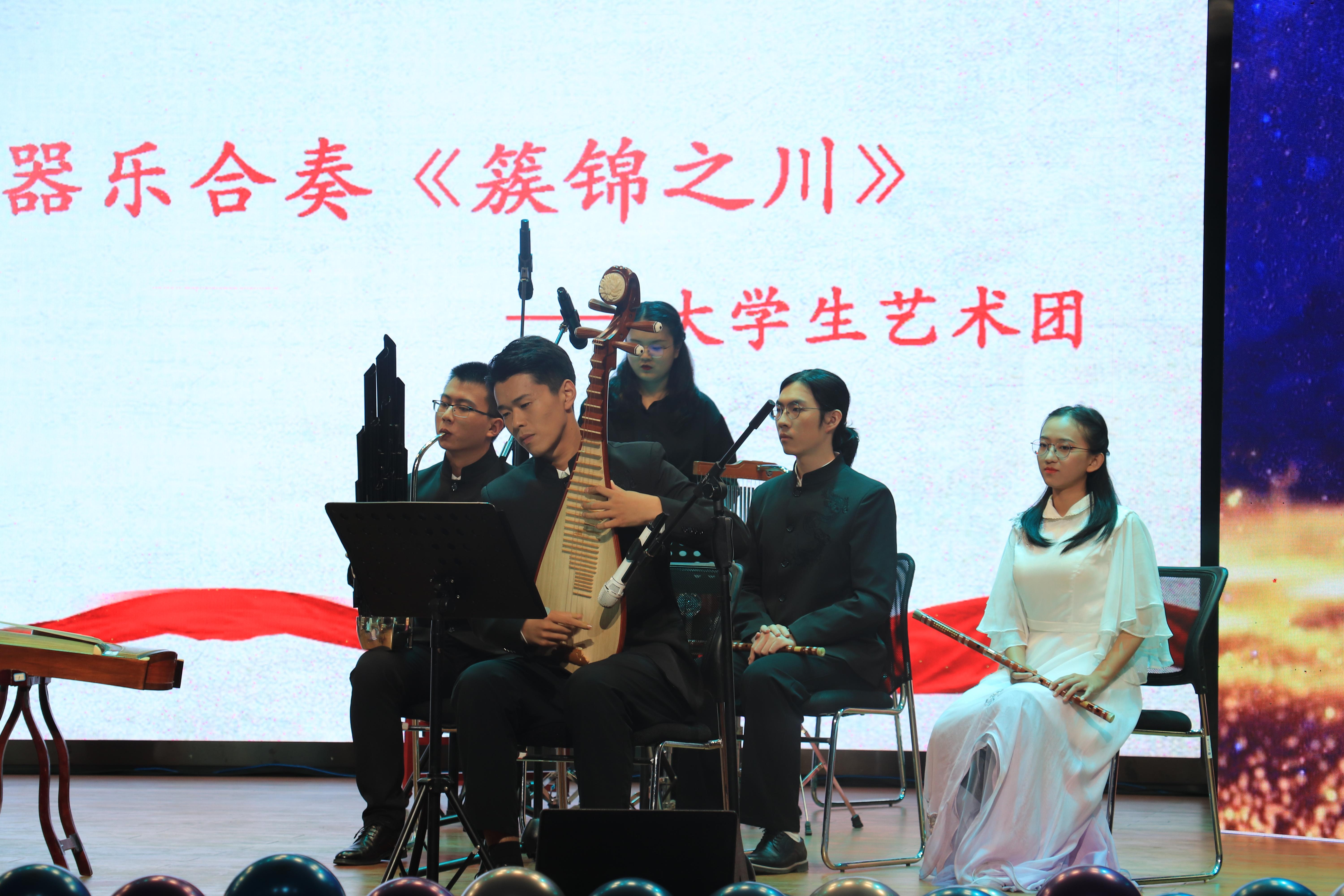 大学生艺术团带来的赏心悦目的艺术表演。大学生艺术团身着民族特色服饰,为现场观众献上绝妙的表演。其中,器乐合奏《簇锦之川》气势宏大,如钧天广乐;《昼夜行》欢快悠扬,余音绕梁。